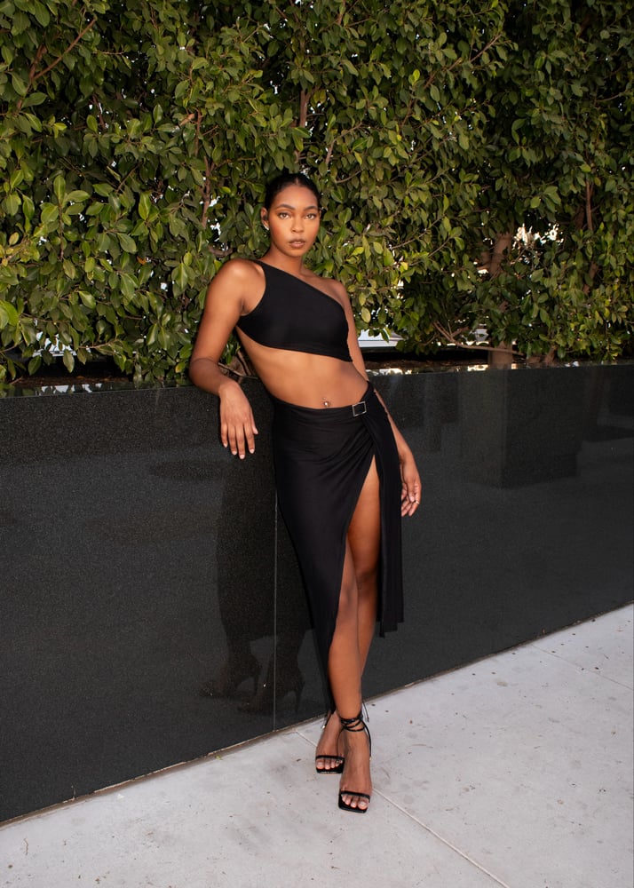 Ready or not, be prepared to captivate onlookers when making an appearance in the Sarita Wrap Dress. This supple jersey knit dress caresses the body as it wraps from skirt to bust. The irresistible design compliments the elegant noir black hue, giving it an unforgettable appeal. An adjustable buckle holds everything in place, and allows for maximum comfort. For your next date night, compliment Sarita with silver heels and simple silver accessories.